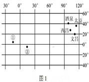 3、单选题 北京时间2012年10月14日11时25分,我国在太原卫星发射中心用长征二号丙运载火箭,采用一箭双星模式,成功将实践九号A/B卫星送入预定轨道。我国目前已经有酒泉(北纬40.965371°N,东经100.283658°E)、太原(38.1°N,111.5°E)、西昌(28. 2°N,102°E)3个卫星发射基地,文昌(19.3°N,109.8°E)卫星发射基地正在建设中。读地球公转示意图和我国卫星发射中心位置图,回答题。