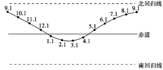 4、单选题 下图示意一年中赤道低气压带的位置变化规律(图中数字为月份与日期),赤道低气压带向北移动幅度大,控制范围广的原因是( )