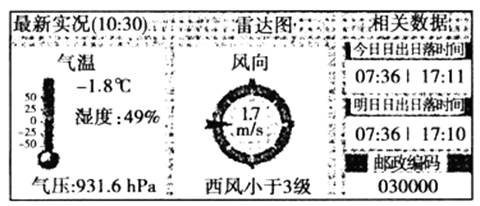 5、单选题 下图为天气网中我国北方某地某日天气预报的截图。