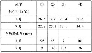 5、单选题 下表为四个城市的气候资料表。据此回答1~4题。