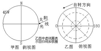 4、填空题 读图(图甲表示北半球夏至日太阳光照示意图)完成下列问题:(10分)
