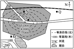 A.住宅区所占城市面积仅次于工业区 B.收入差异为住宅区分化的主要原因之一 C.住宅区趋向于沿主要交通干线分布 D.高级住宅区一般分布在地价较高的市中心附近 5、单选题 经济因素是市场经济条件下影响城市功能分区的因素。读“某城市地租分布等值线图”,回答问题。 |