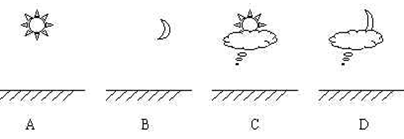 本题解析:试题分析:以上四幅图表示北半球同一纬度、同一季节的四种情况,首先白天气温要比晚上气温更高,而多云的晚上要比晴朗的晚上气温要更高,因为晴朗的晚上,大气的逆辐射作用强,气温更高,所以最低的是B图表示的,故选B.