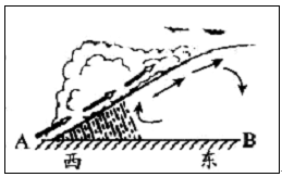 (1)此图为_____锋示意图,A、B两地中_____地将有锋面经过,锋面经过时,该地多出现_____性降水。该降水位于锋_____(填“前”“后”)。