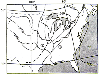 A.②洋流加快了海洋污染净化速度,缩小了污染范围 B.在②③⑤洋流影响下,大陆沿岸降温增湿明显 C.在⑤洋流强弱变化的影响下,可能会引起“厄尔尼诺”和“拉尼娜”现象发生 D.⑥⑦洋流交汇处对海轮航行有利 4、单选题 下图是北美某年1月30日8时海平面等压线图,图中虚线为一锋面系统,读图回答下列各题。 |