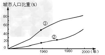 4、综合题 读“世界发达国家与发展中国家城市化进程曲线图”分析回答: