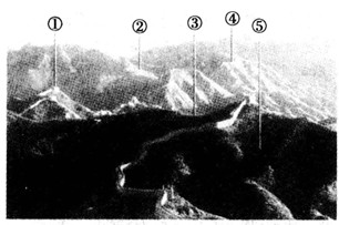 3、单选题 下图是八达岭长城照片,该段长城主要坐落在花岗岩侵入体上。读图,回答第1—2题。