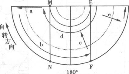 点评:本组题以南极为中心的极圈俯视图上洋流的分布为载体,要求考生能准确分辨出图中的洋流名称,同时结合经纬网知识确定方向,试题有一定的难度,属于中档性的题目