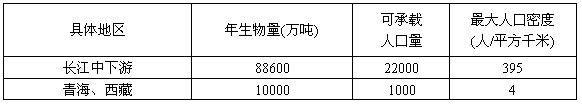 2、下列关于青藏地区环境人口承载力特点的叙述,正确的是