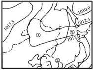 A.17℃ B.16℃ C.19℃ D.18℃ 2、单选题  图示北半球某区域等压线图,读图回答1~2题。  |