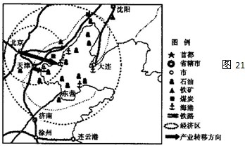 3、综合题 读“环渤海经济圈略图”(图21),回答下列问题。(7分)