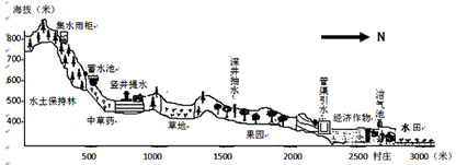 小题2:从图中可知该地区修集水雨柜、蓄水池、水井、管渠引水工程等,都是为了改善水源条件,D对。热量条件主要通过大棚改造,A错;地形条件主要通过工程建设(如梯田等),B错;生态条件不是影响农业因素(不同条件下农业类型不同),C错。