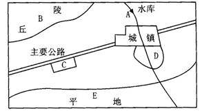 3、综合题 读下图,该镇周围要发展小麦、乳牛、花卉、养鱼、果园五种农业,请在A、B、C、D、E五个区位安排这五种农业,并说明理由。(10分)