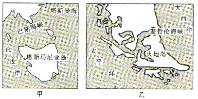 1.图中的两海峡相比2.塔斯马尼亚岛与火地岛
