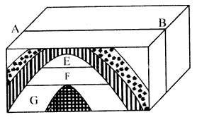 2、如图所示,背斜构造内E、F、G分别代表