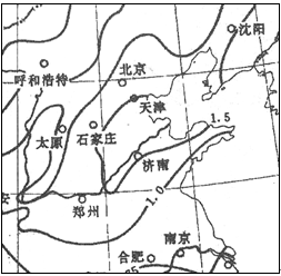【小题1】湿润地区与半湿润地区分界线是秦岭—淮河一线,与图中1.0干燥度线基本一致,故排除选项B;根据图中等值线变化规律可知,图中相邻等值线之差为0.5,由图可知南京介于干燥度线1.0与0.5之间,可以排除选项A、D,故选项C正确。