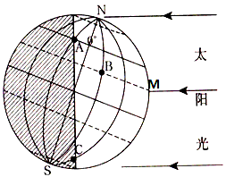 (4)在图中标出此时太阳直射点M的位置,M的地理坐标是经度________,纬度________。