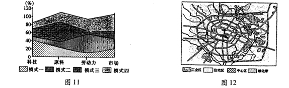 1、单选题 读“某城市地域结构图”(图12),分析回答18~19题。