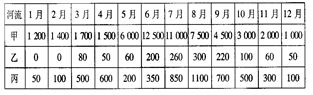 5、单选题 右表为我国三个地区甲、乙、丙三河各月流量资料(立方米/秒)。据此回答问题。