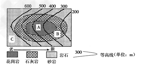 1、单选题 读岩层地质界线和等高线示意图,回答1--2题: