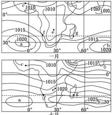 4、综合题 (18分)读某区域一月、七月海平面气压(单位:百帕)分布图,回答下列问题。