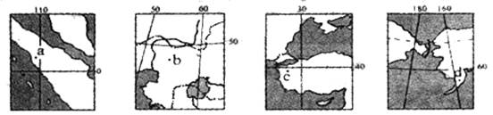 1.四幅图中位于亚洲与北美洲边界的图是2.四幅图中符合右图气候类型的图是