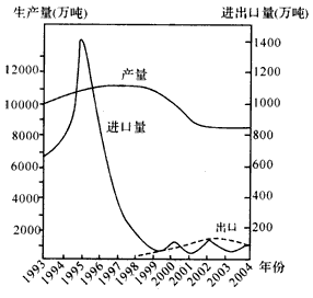 1、单选题 下图为我国小麦生产量及贸易量曲线图。读图回答1~2题