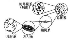【小题1】图示包括最低一级的地月系,比地月系高一级的太阳系,比太阳系高一级的银河系和河外星系;最高一级 的总星系。共4级。