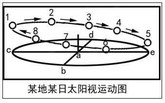 4、单选题 下图为北半球观测点a某日的太阳视运动轨迹图,回答下列各题 |