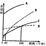 A.虚线处是鞍部 B.虚线处是河谷 C.虚线处等高线稀疏 D.虚线处等高线密集 参考答案:小题1:B 本题解析:小题1:铁路分布一般沿地形平坦的位置分布,环形分布其地形是中间高,四周低的山地。 本题难度:简单 2、单选题 重庆有2000吨土特产需在10天内运到上海与其他货物一起出口,下列运输方式省时省钱的 参考答案:D 本题解析: 本题难度:简单 3、综合题 20.读下图,其中上图反映了美国某时装公司全球产销网络的一部分,下图呈现了信息流动和相继的货物流动过程。通过高效的管理和陆空集装箱联运,从公司发出订单到时装在零售店上架的实际时间在60天之内。回答下列问题: 参考答案::(1)3?4?(2)3?3?12?(3)②?(4)依次为④ 本题解析:本题综合考查对市场经济以及相关信息的理解,并考查学生时间计算能力和知识迁移能力。第(1)题:注意时区、区时的计算。题目中的已知条件:C城(西五区)的时间、求算香港(东八区)的时间。第(2)题:计算时应注意几点:①1997年是平年,2月份共有28天,②从订单加工到零售需60天时间,③注意区时的换算。第(3)题:解答此题的关键在于比较该公司与多数美国公司完成此过程所需的时间,显然竞争优势在于快速占领市场。第(4)题:关键是了解市场经济以及市场经济条件下的工业生产和商贸活动。第(5)题:注意题目的明示条件“从信息处理和传输方式”去对比分析我国时装业发展的障碍。 本题难度:一般 4、单选题 下图为“欧洲货物四种运输方式运费与运距相关曲线示意图”,据图判断1—2题。 参考答案:1、A 本题解析: 本题难度:一般 5、单选题 一些以交通最优为原则的商业街,可以建在(???) 参考答案:D 本题解析:试题分析:交通运输对商业网点位置的影响:很多商业网点以交通最优为原则,建立在市区环路边缘或市区边缘的高速公路沿线。正确答案选D。 本题难度:简单 |