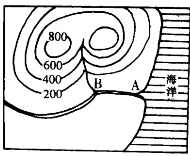 (1)图中B处的地形名称是(2)河流堆积物从B到A处堆积的情况是