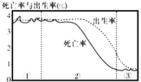 A.①时期,人口出生率大幅下降,导致人口自然增长率降低 B.②时期,人口生产处于低出生率、低死亡率、低自然增长率阶段 C.③时期,人口生产处于高出生率、低死亡率、高自然增长率阶段 D.④时期,经济的快速发展导致人口自然增长率下降 |