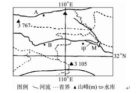 本题解析:M是丹江口水库大坝,题目的解答模仿长江三峡的相关内容,如水库移民等。海拔3 767米山峰所在的山脉是秦岭,是亚热带和暖温带的分界线。
