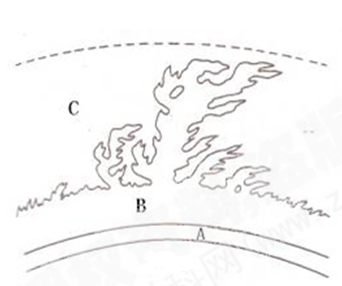 【小题1】图中A、B、C依次为太阳大气层的光球层、色球层和日冕层,太阳黑子和耀斑分别发生在光球层和色球层上。