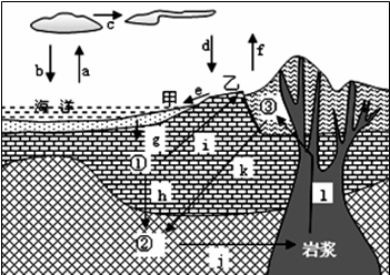 小题2:e环节为地表径流,在海岸地带主要为泥沙沉积,A错误;g表示沉积作用和固结成岩,属于外力作用,B错误;③表示岩浆岩,不可能与②变质岩相互转化,D错误。故选C项。