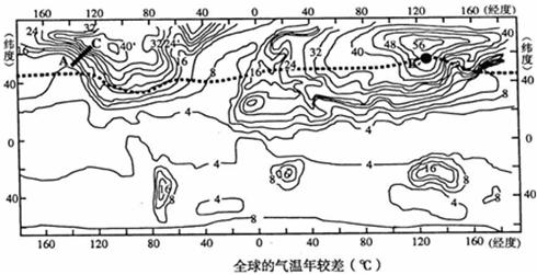 A.夏季风 B.洋流 C.地形 D.锋面 2、单选题 ??? 下图中,①、②、③、④、⑤表示某区域地形类型中的山脊和山谷,点a、b、c对应的海拔分别为900米、600米、300米。读图完成1—2题。 3、单选题 若右图是以甲为中心的等震线图,则(?) 4、综合题 读“某月份海平面及地面等压线分布图”,回答问题。(10分) 5、综合题 读世界各地气温年较差分布示意图(虚线表示水稻种植北限),分析以下问题:(12分) |