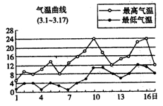 单选题 “春天孩子面,一日三朝变”。阅读今年3月1日至17日上海地区气温曲线图,分析回答下面几题。