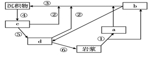 单选题 读“岩石圈物质循环示意图”,回答下题