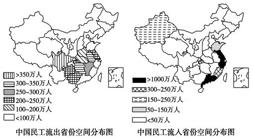 单选题 根据抽样调查,中国每3个产业工人中就有2个来自农村地区,近年来中国外出务工的农民日趋增多。读图回答问题。