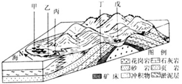 A、乙处为河流冲积扇