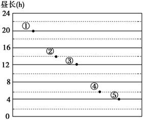 2、单选题 若图示为某日①②③④⑤五地的昼长状况,则五地中( )