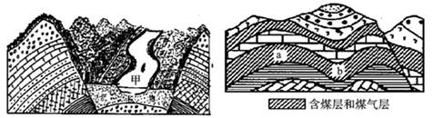 【小题2】在右图地区有含煤层和煤气岩层,在a地和b地开采过程最应该注意的安全问题是( )