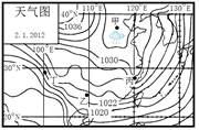 1.此时,甲地气压最可能是???????hpa2.此时,甲、乙、丙、丁四地中,可能出现雾霾天气的是
