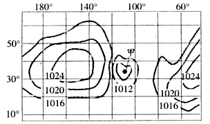 3、单选题 下图示意图为某区域某季节等压线分布(单位:hpa),读图回答下列各题。