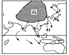 2、单选题 图为亚洲部分地区某月气压与风向示意图。读图完成以下问题。