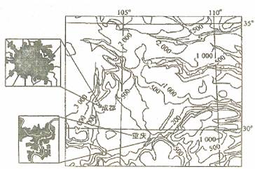 材料二?西南部分地区等高线图及成都、重庆城市地域结构示意图