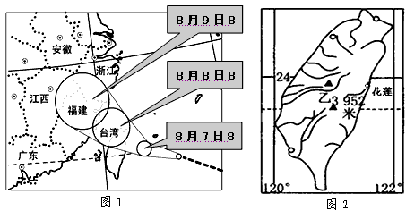 (1)台风是_______________(天气系统)强烈发展的结果。受其影响,8月7日8时花莲县的主导风向是