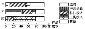 3、单选题 下图为工业部门产品成本比例示意图,读图回答1—2题。