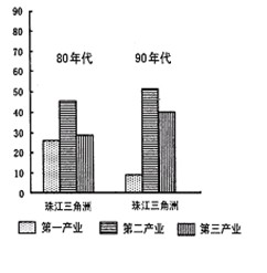 材料一:珠江三角洲地区的两次大规模产业转移。20世纪70~80年代,香港和台湾等地的企业大量向珠江三角洲地区转移,这次产业转移使珠江三角洲地区经济得到快速发展,产业结构有所调整。但90年代中后期,珠江三角洲地区又开始了第二次产业转移,原先从香港.台湾等地迁来的部分产业逐步转移到粤东、粤北等欠发达地区。