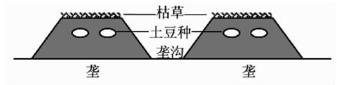 3、单选题 广西大力推广马铃薯稻草覆盖免耕栽培技术。具体做法是(见下图)当地农民将土壤堆高起垄,在垄中的畦沟播种马铃薯及肥料,然后覆盖稻草,待马铃薯萌芽出土后再将垄沟的泥土覆盖在稻草上。马铃薯为喜光作物,要求地温较稳定(12-15℃适宜),喜水分多且透气性好的土壤,宜施有机肥,忌渍水。据此回答下列各题